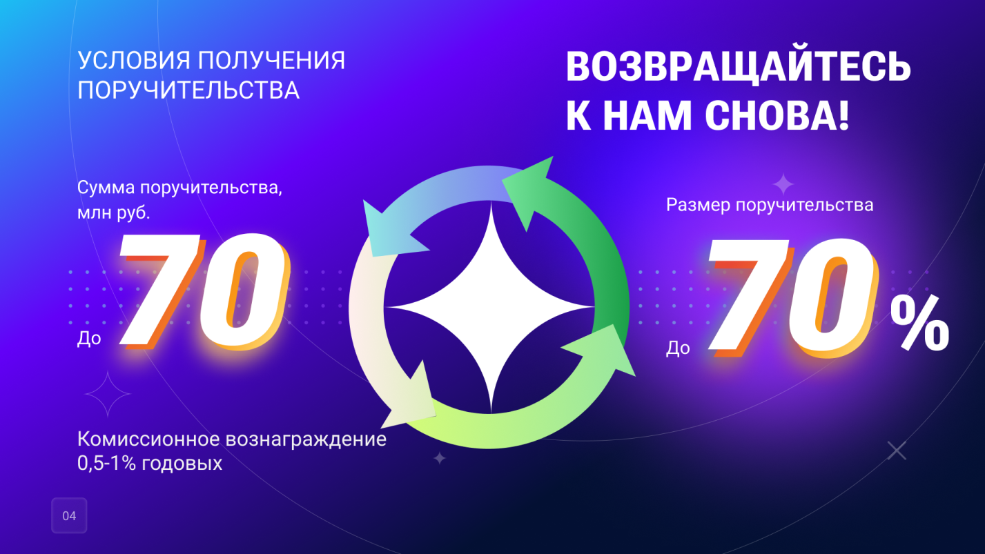 Напомним, максимальная сумма поручительства Гарантийного фонда Республики Татарстан по продукту «Поддержка – 2024» составляет 70 млн рублей, размер поручительства – до 50% от суммы кредита. Ставка по вознаграждению зафиксирована и составляет 0,5%.