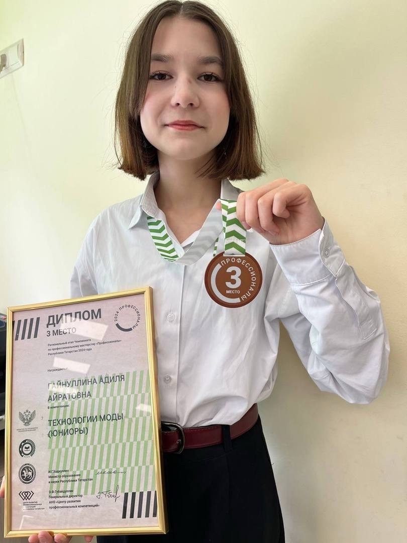 Ученица 8б класса лицея им. В.В. Карпова села Осиново Адиля Гайнуллина завоевала 3 место на региональном этапе по профессиональному мастерству «Профессионалы» в компетенции «Технологии моды (юниоры)».