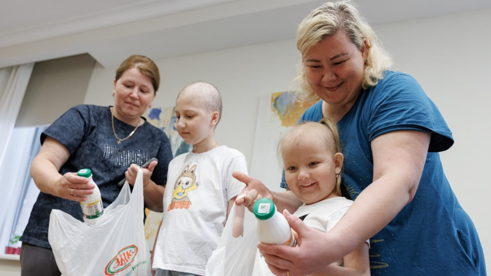 Многие ребята проходят тяжелое лечение на протяжении нескольких лет, и всё это время рядом с ними находятся их родители. В знак поддержки предприятие передало подарочные наборы с молочной продукцией брендов «Очень важная корова» и «Обнимама», пожелав скорейшего выздоровления.