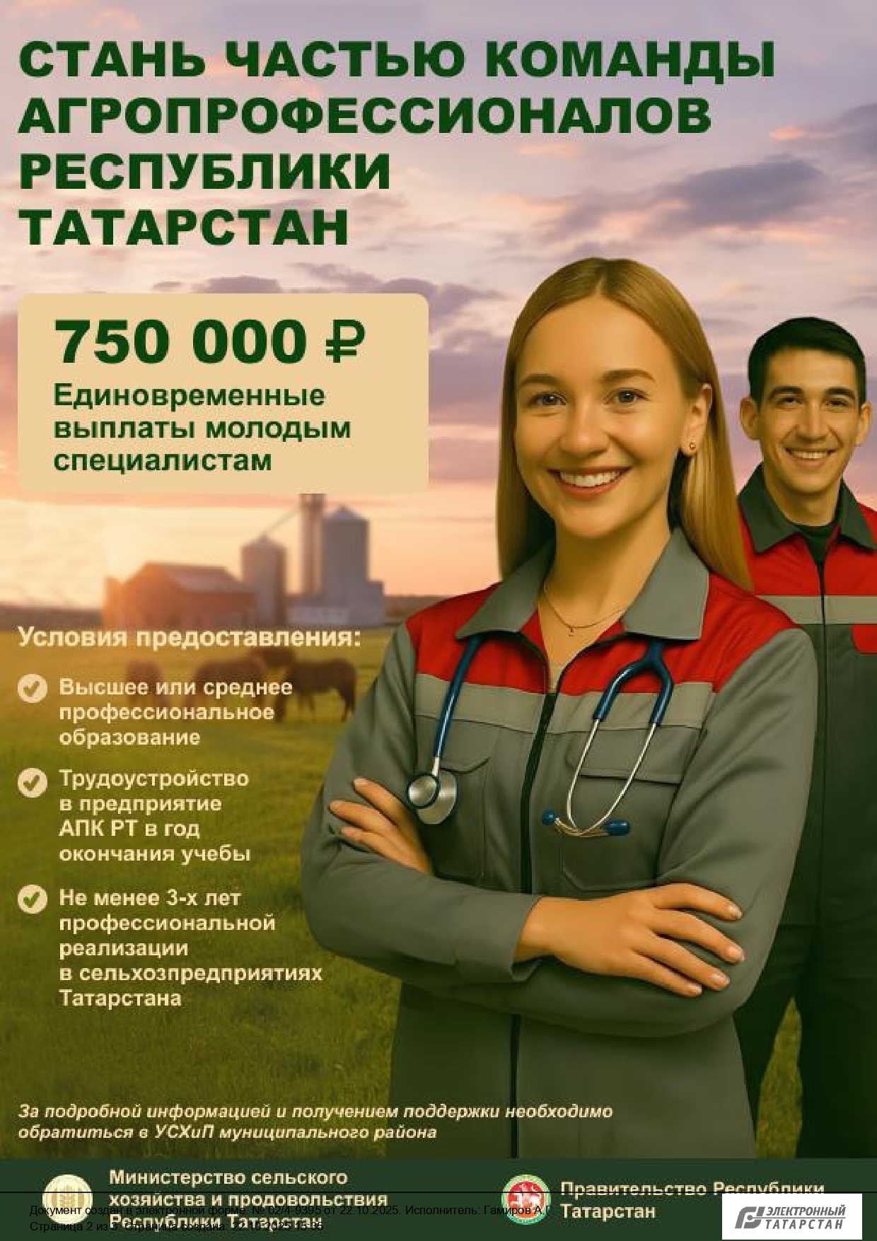 Не менее 3-х лет профессиональной реализации в сельхоз предприятиях Татарстана