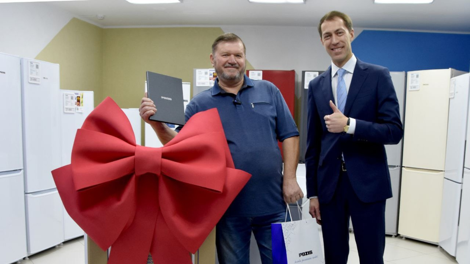 Обладателя ценного подарка поздравил заместитель генерального директора по стратегическому маркетингу АО "ПОЗиС" Булат Хасанов. Он вручил Александру Петровичу заслуженный приз и от лица компании поблагодарил за покупку и участие, пожелав оставаться приверженцем марки POZIS.