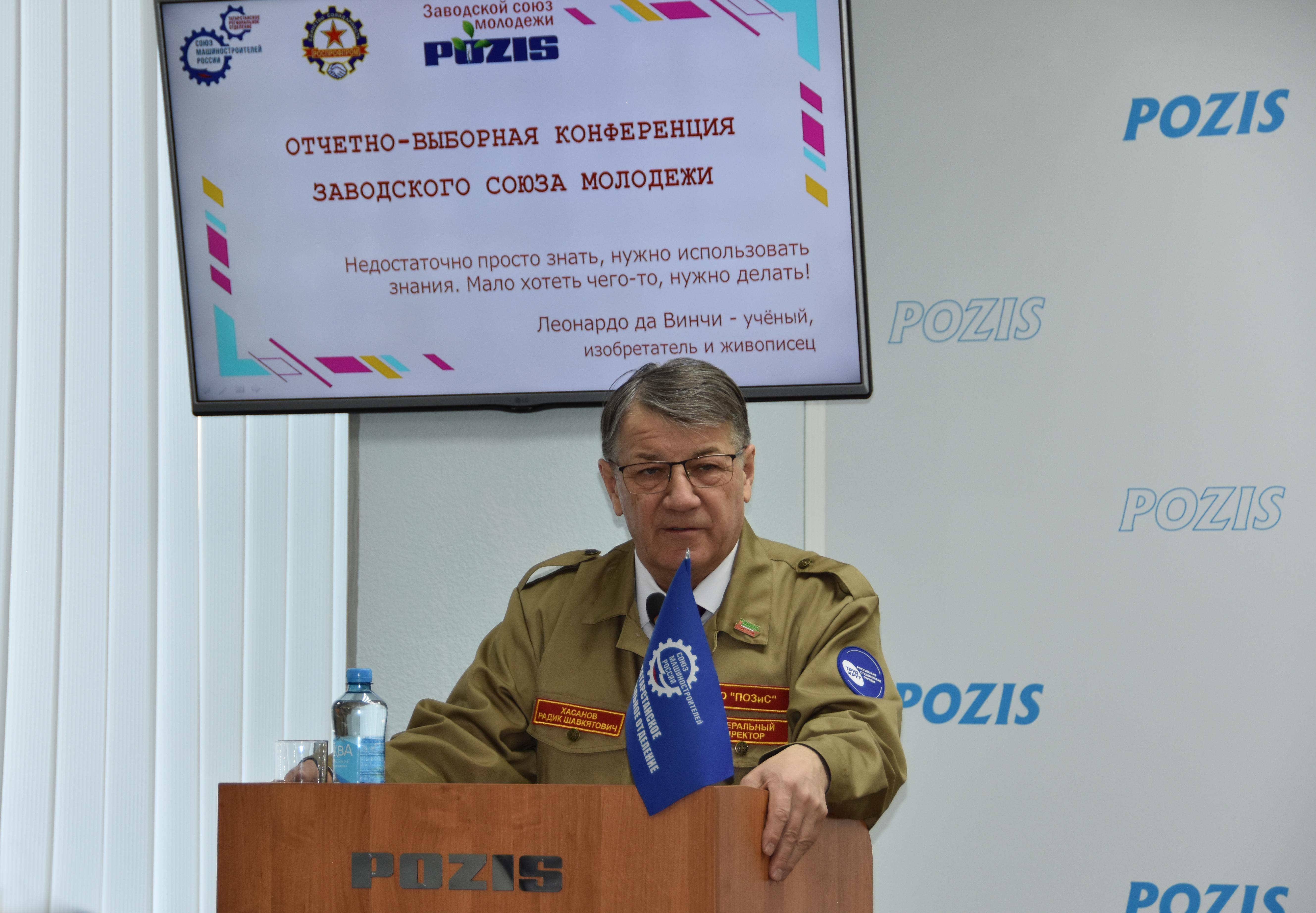Перед присутствующими также выступили почетные гости: директор Зеленодольского механического колледжа, Народный учитель РТ Виктор Муханов, директор Республиканского центра студенческих трудовых отрядов Василий Ислаев, которые акцентировали внимание на активное взаимодействие POZIS с образовательными учреждениями, а именно непосредственное участие в организации производственной практики студентов. В знак признательности за поддержку молодежного движения Василий Ислаев вручил руководителю завода памятную «целинку» - куртку бойца студенческих отрядов.
