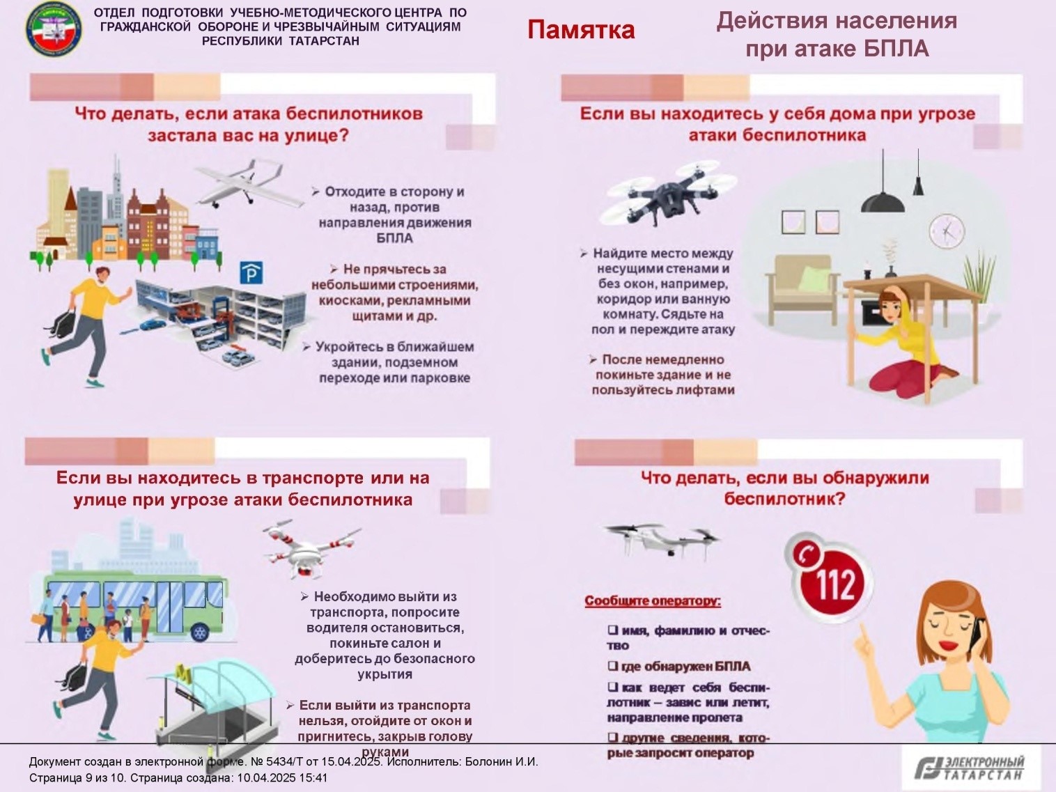 С получением сигнала оповещения «Внимание! Республика Татарстан! Опасность атаки БПЛА»: