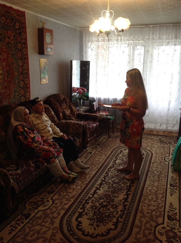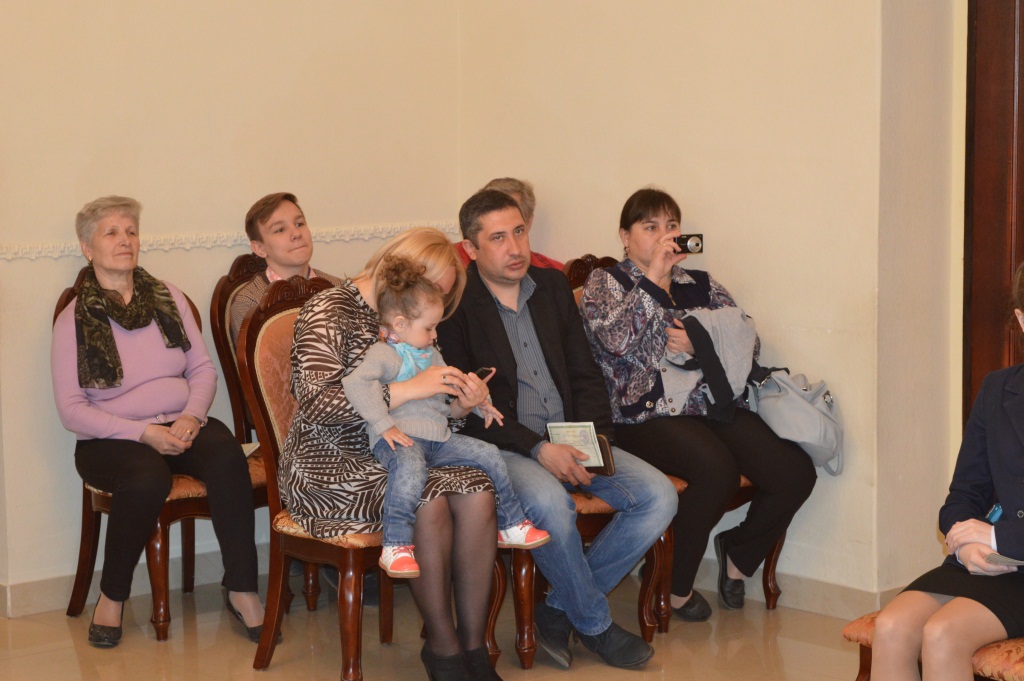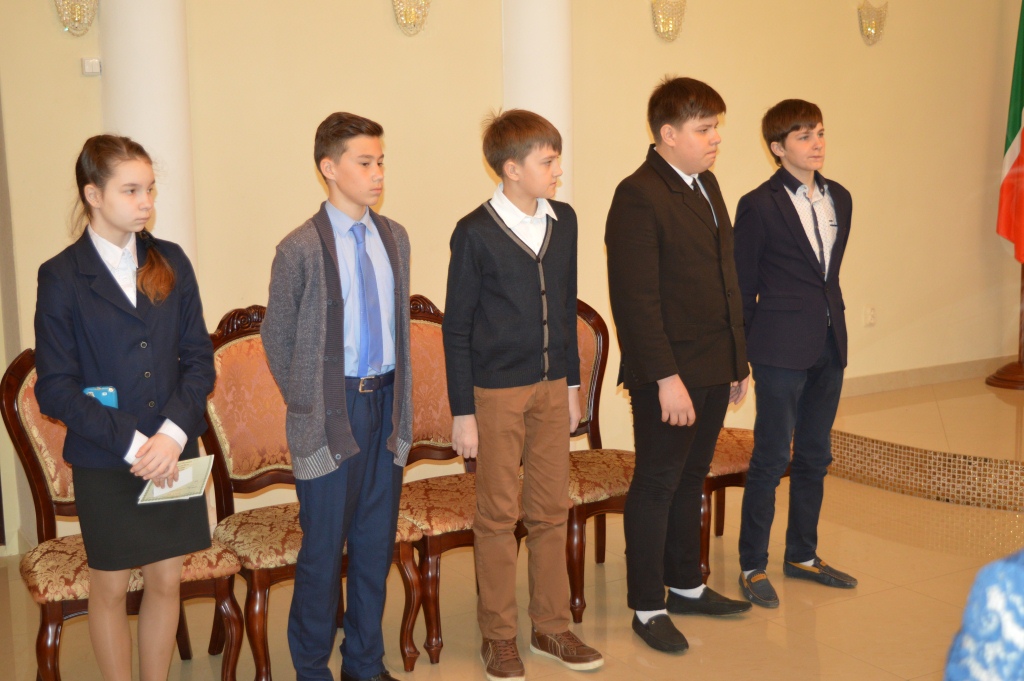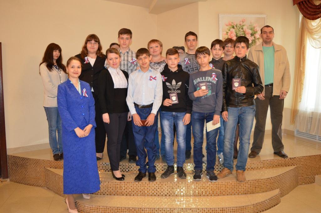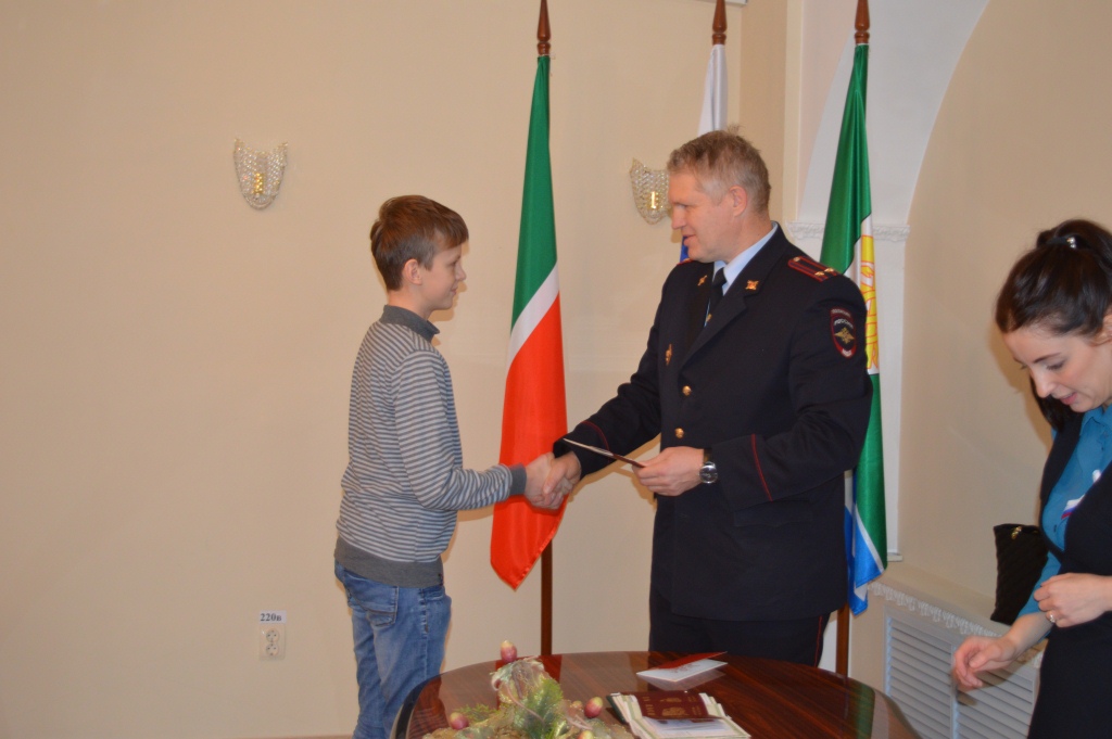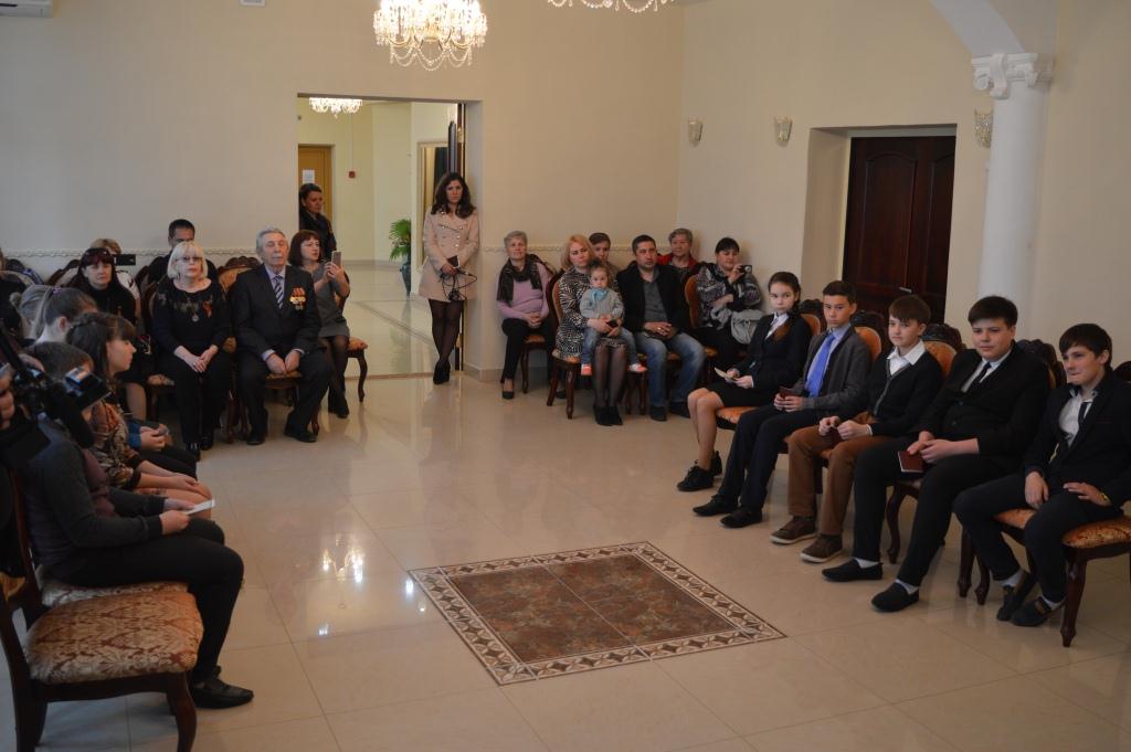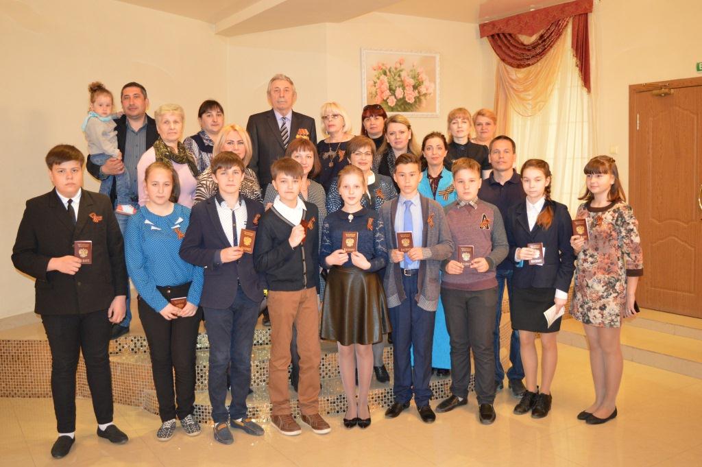 В отделе ЗАГС Исполнительного комитета Зеленодольского муниципального района Республики Татарстан состоялось торжественное вручение паспортов 14-летним гражданам, посвященное празднованию 71-годовщины Победы в Великой Отечественной войне. На праздничном мероприятии присутствовали: член Совета ветеранов МВД России по Зеленодольскому району, ветеран МВД- Гарифуллин Рахимулла Каримович; ветеран боевых действий в Афганистане, член Зеленодольского отделения общественной организации «Боевое братство»- Садреева Наталья Сергеевна; председатель Женского Совета Зеленодольского отделения общественной организации «Боевое братство», вдова погибшего воина -интернационалиста- Бариева Фирая Вагизовна.