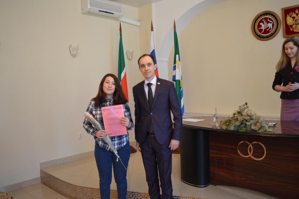 Яшел Үзән муниципаль районы башкарма комитеты ГХАТ бүлегендә тантаналы рәвештә ана (гаилә) капиталын тапшыру