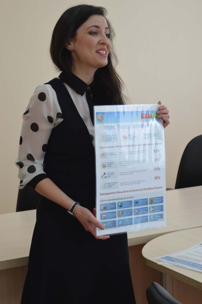 ГХАТ бүлеге начальнигы урынбасары, тыңлаучылар игътибарына бөтен электрон хезмәт күрсәтү исемлеге тәкъдим итте, ЗАГС рассказа турында шунда, һәм алар белән Татарстан Республикасы дәүләт хезмәтләре порталында ничек файдаланасын аңлатты.