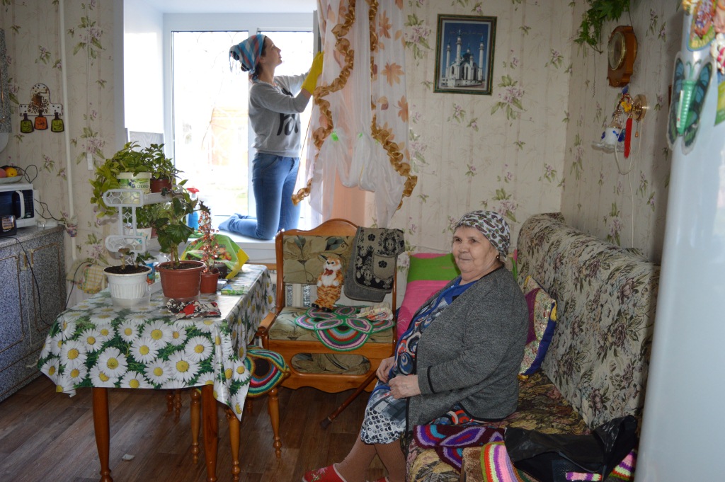 "Изге эш чын йөрәктән". Шул девиз буенча ГХАТ бүлеге хезмәткәрләре Башкарма комитеты Яшел Үзән муниципаль районы актив катнашалар Республика хәйрия, иреклеләр акциясе "Язгы изгелек атнасы-игелекле эшләр эстафетасы". Шулай итеп, 2016 елнын 21 апреленда ГХАТ бүлеге хезмәткәрләре, Яшел Үзэн шәхәре халыкка социаль хезмәт күрсәтү "Рәхәт» үзәге өлкән яштәге Насыйрова Фәгимә Давлетшевнынын фатирын жыештырырга булыштылар. Бик теләп һәм яхшы кәеф белгечләр, 2 сәгать өчен әбинең фатирда барлык тәрәзәләр юып чыкканар.