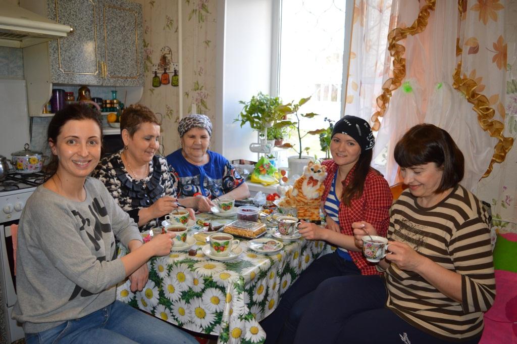 Фәгимә Давлетшевна, үз чиратында, ярдәм итүләре өчен рәхмәт әйтте һәм аннан соң урып-җыю чәй табыны артында уртаклашты хатирәләре турында үзенең балачакта, хөкүмәт белән туры килде сугыш белән һәм сугыштан соң .