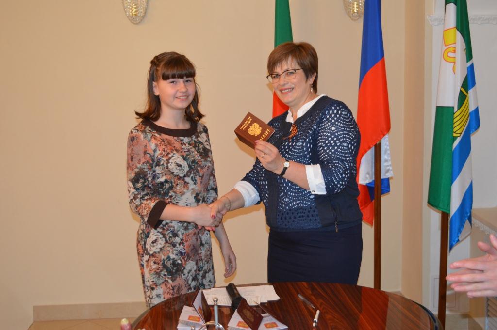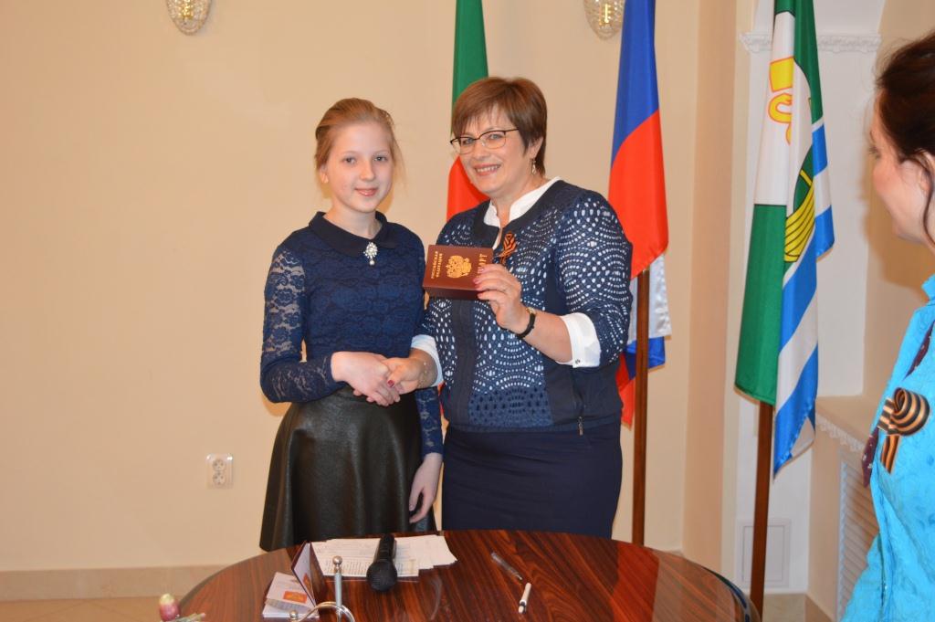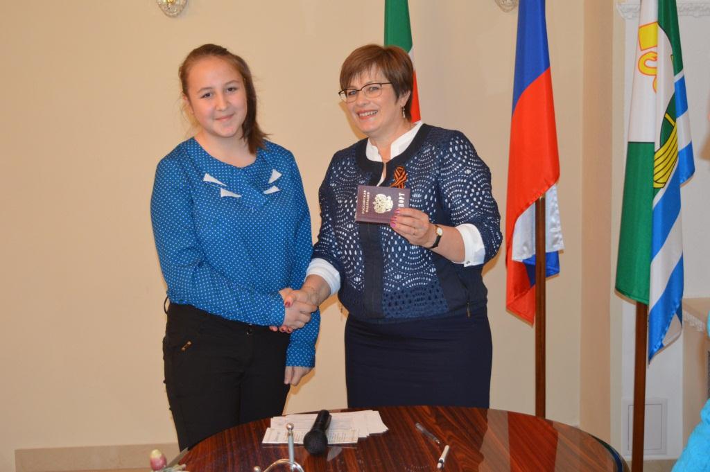 Ten young Zelenodolsk new identity cards were presented by the Deputy chief of Department UFMS of Russia in the Republic of Tatarstan, Zelenodolsk district Milyausha Kamalova Gabdrafikova.