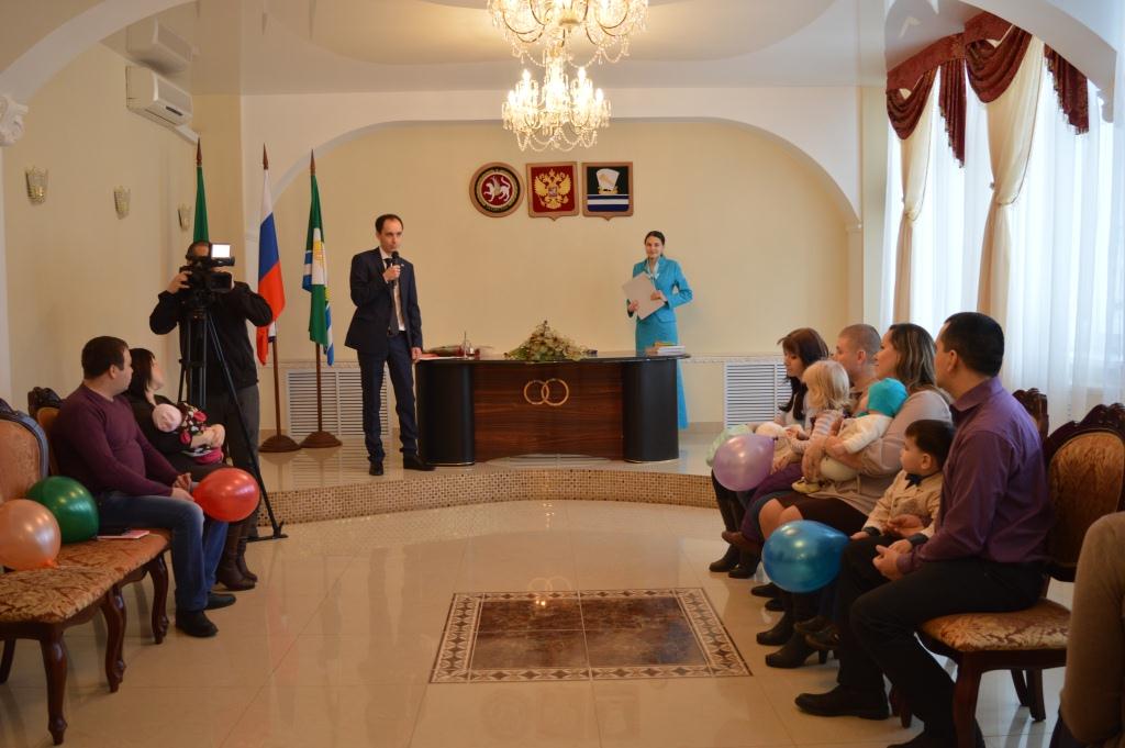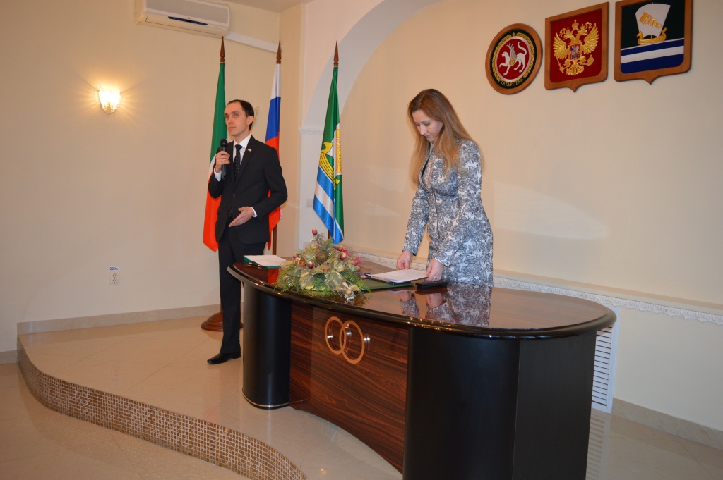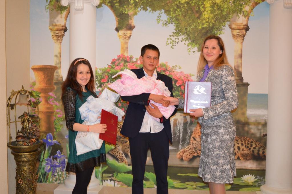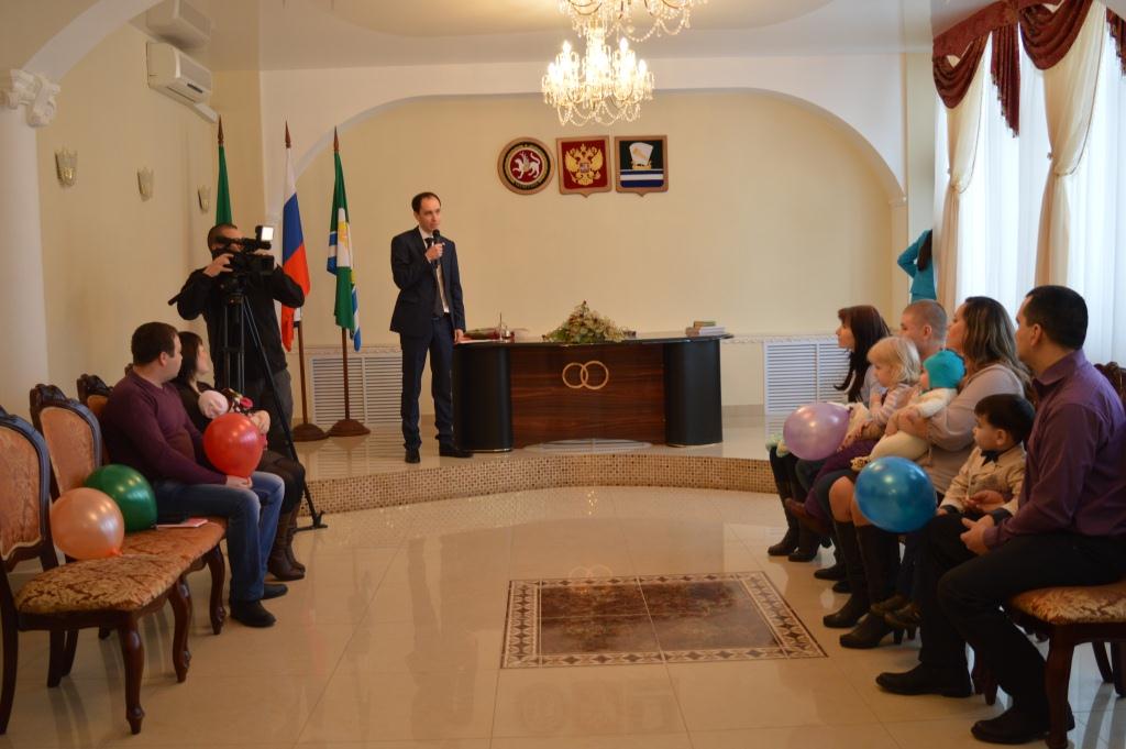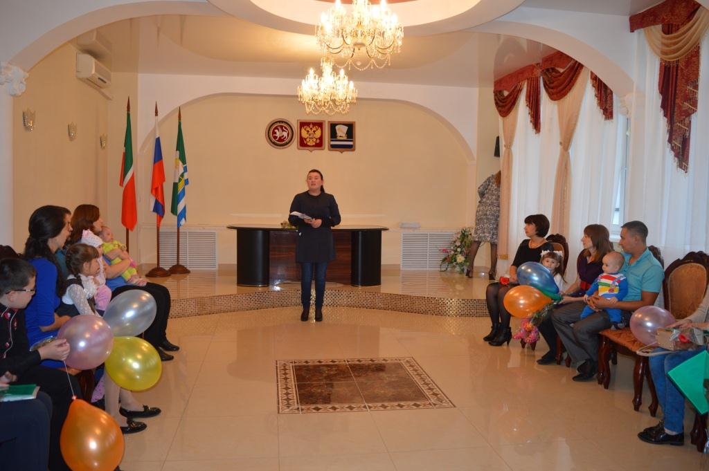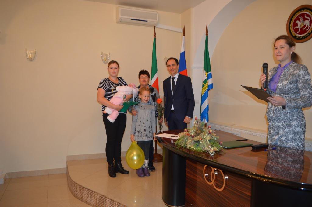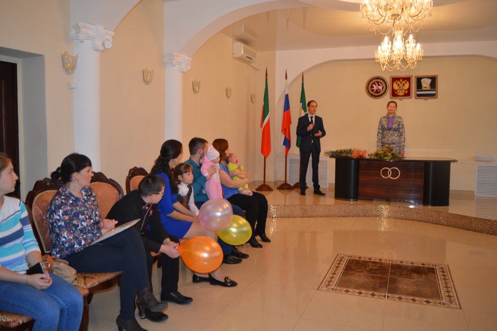 Туу белән балаларны бәхетле ата-аналарны котлады, ЗАГС бүлеге башлыгы Яшел Үзән муниципаль районы Башкарма комитетының Яковлева Мәрьям Ханым, аларга истәлекле бүләкләр тапшырылды.