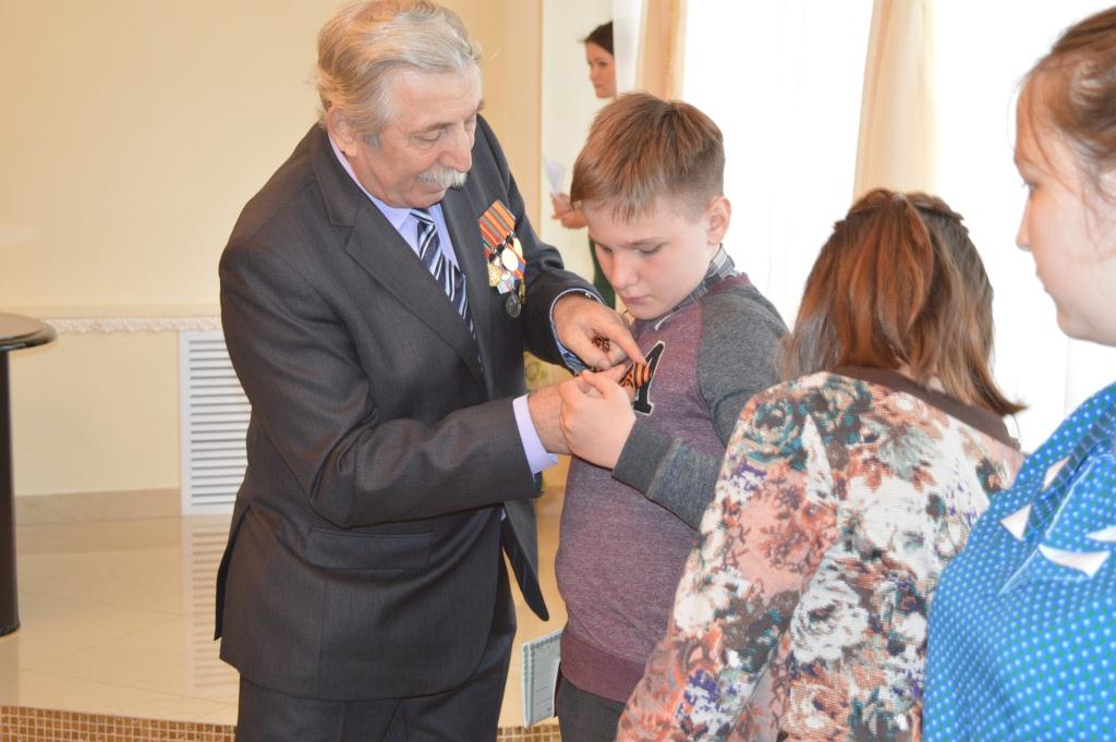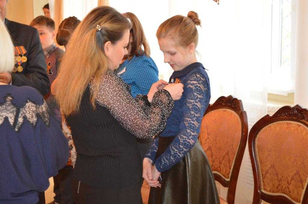 Ребята с гордостью надевали георгиевскую ленточку, выражая свое уважение и благодарность воинам, сражавшимся за Отечество, за их светлое и мирное будущее.