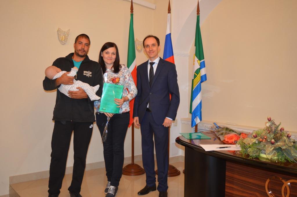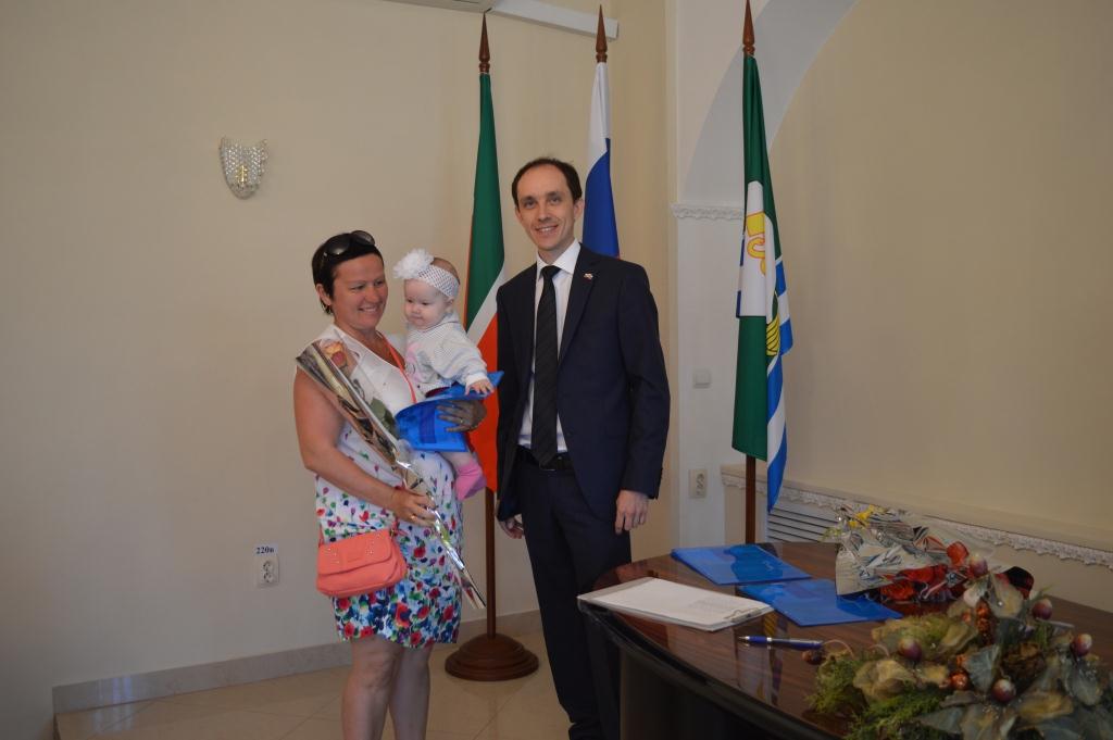 Яшел Узән шәһәре, Яшел Узән һәм Югары Ослан районнары буенча Пенсия фонды идарәсе Алексей Сабурский котлады, бәхетле ата-аналарны иң мөһим һәм шатлыклы вакыйга - бала тууы белән котлады һәм аларның гаиләләренә сәламәтлек, иминлек теләде. Аннан соң тантаналы рәвештә ана капиталы сертификатларын тапшырганда, Алексей Сабурский, ана капиталы акчаларын нинди максатка җибәрергә мөмкин булуы турында мәгълүмат бирде.
