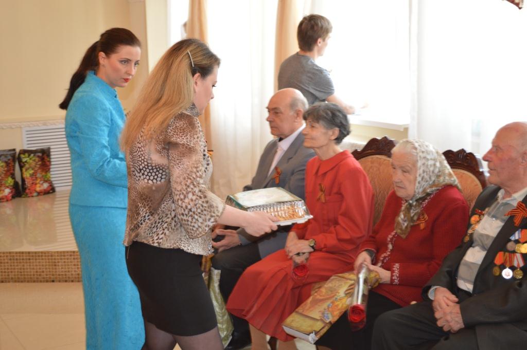 Яшел Үзән хлебокомбинат директоры Гордеева Лариса Виктор кызы юбилярларны, Бөек Ватан сугышы ветераннары котлап, алар өчен үз предприятиясенең продукциясен, "Чәк-Чәк", юллап җибәргән.