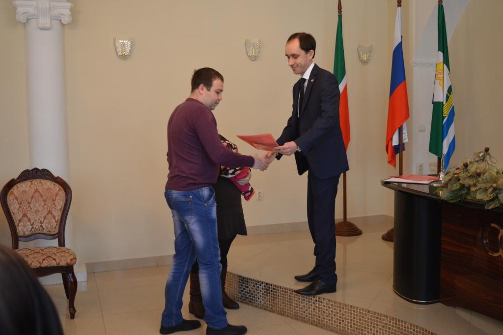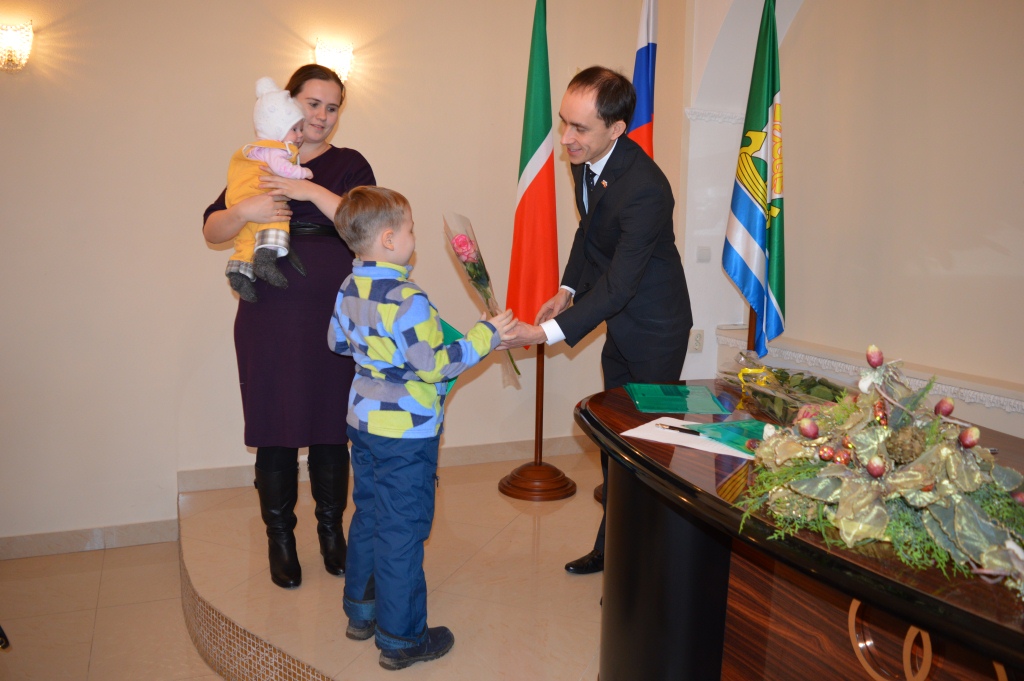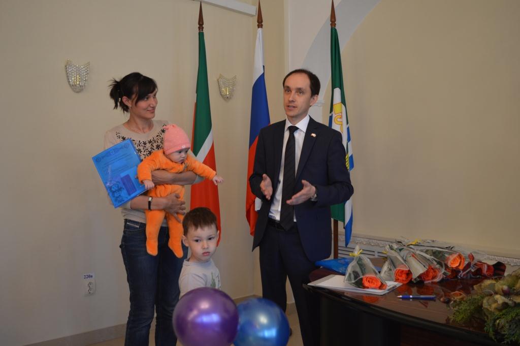"Хөрмәтле әти-әниләр, - дип мөрәҗәгать итте бәхетле сертификат ияләренә Сабурский Алексей Вячеслав улы – электән гаилә терәк, ышанычлылык һәм тотрыклылыкны билгеләп килә! Һәм бүген бик күңелле сезнең гаиләләрдә сабый туу белән котларга! Бу матур көнне барчагызга да, Сезгә һәм Сезнең балаларга, уңышлар телисе килә. Сезнең гаиләләрдә сәламәтлек, мәхәббәт һәм татулык булсын!"