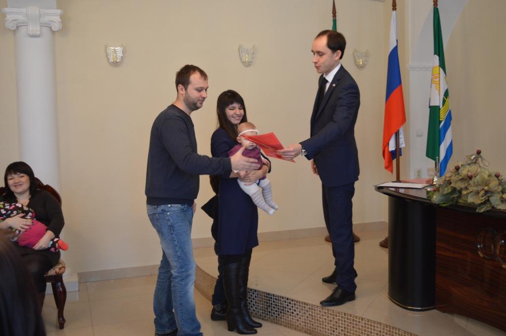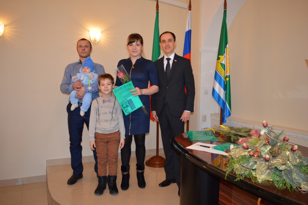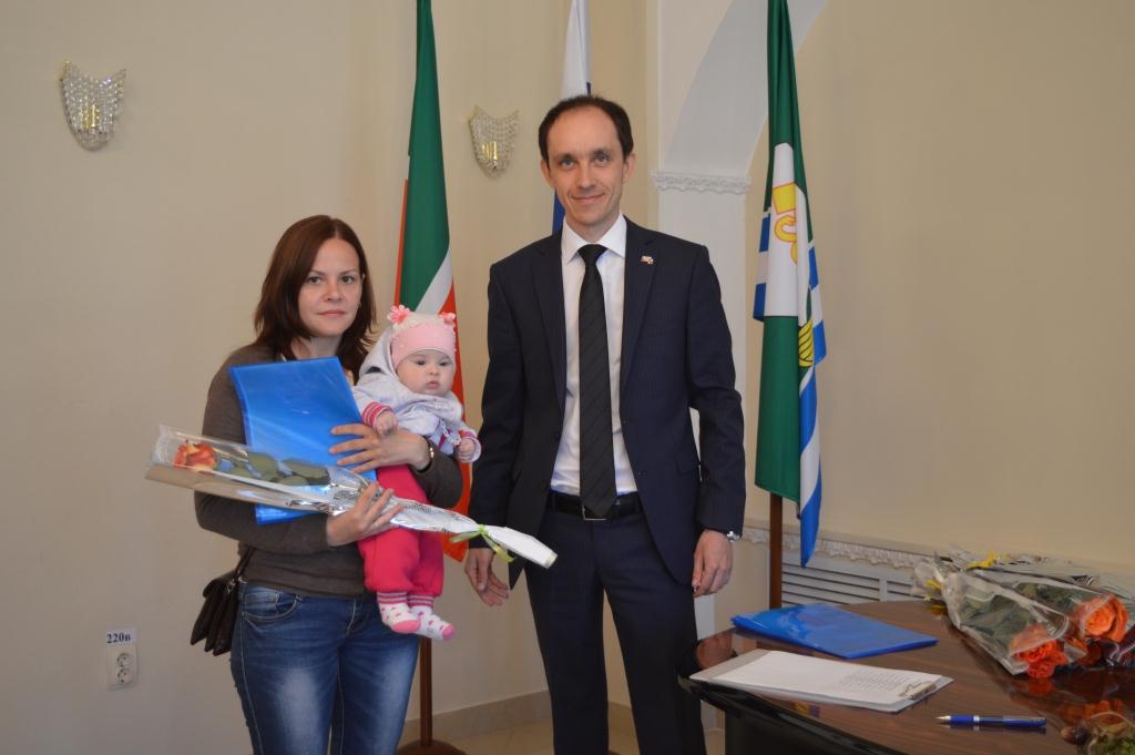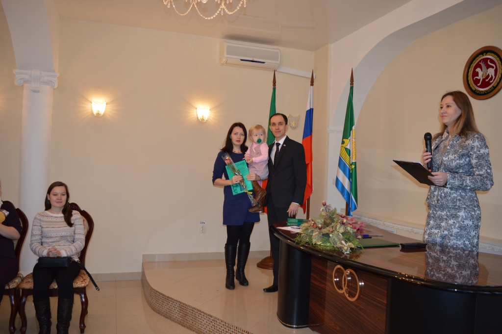 Тантаналы рәвештә сәхнәгә бер-бер артлы үзләренең яңа туган сабыйлары беләт әти-әниләр күтшрелделәр. Пенсия Фонды Идарәсе җитәкчесе Алексей Сабурский яшь гаиләләргә сертификатлар тапшырганда тапшырды, дип искә төшерде, дип күләме-ана (гаилә) капиталы 2016 елда 453 026 сум тәшкил итә дип әйтеп узды. Ана капиталы сертификаты хуҗалары әниләргә, 2016 елда бер тапкыр бирелә торган 25 мең сум алуга хокукы бар. Әлеге акча белән түбәндәге юнәлештә файдаланырга мөмкин булачак: үзләренең торак шартларын яхшырту, баоага белем бирергә, яки баланың анасы песиясенә кертергә.