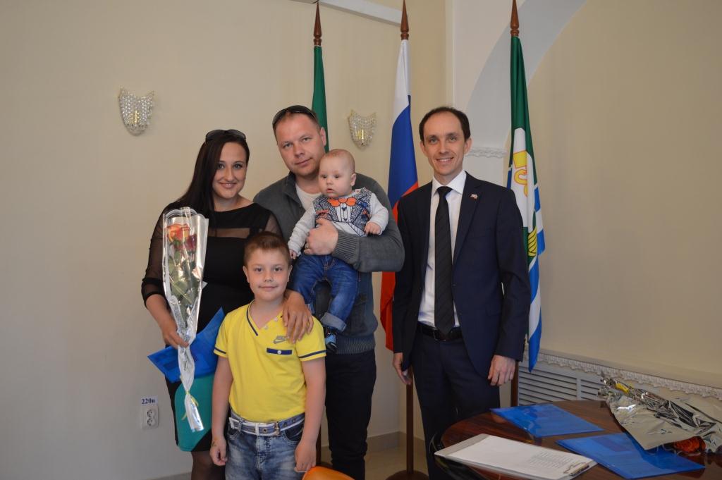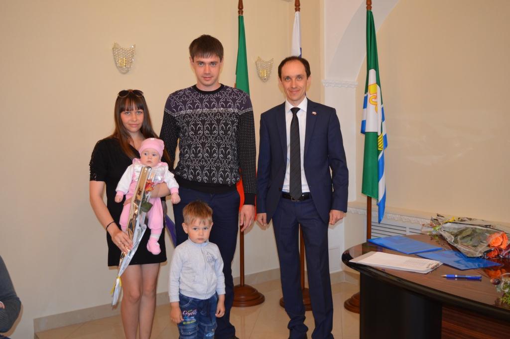 Алексей Вячеславович 5 бәхетле парны аларның тормышларында дәүләттән бик мөһим бүләк алулары белән - ана(гаилә) капиталы сертификаты алулары белэн котлады. Ул дөрес куллану вакытында гаиләгә бик күп җитди сораулар хәл итәргә ярдәм итәчәк.