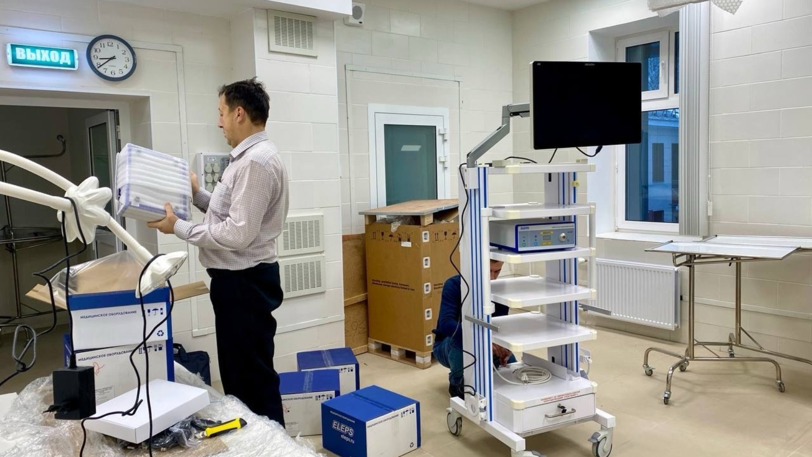 Хәзер белгечләр эндоскопик операцияләр өчен җиһазлар җыя һәм операцион яктырткычлар урнаштыра.