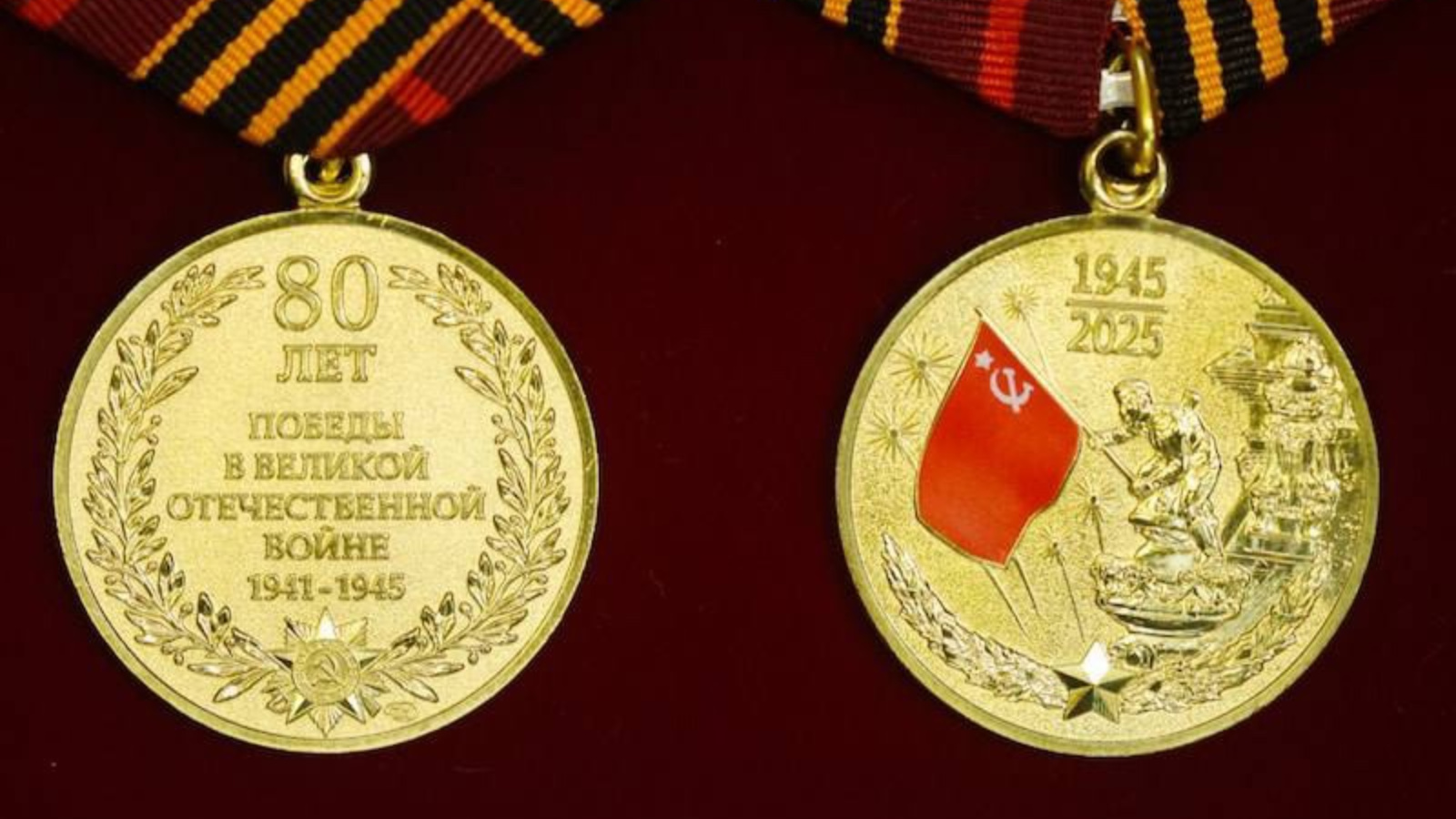 Оригиналь медальдә Евгений Халдейның «Рейхстаг өстеннән Җиңү Байрагы»легендар фотосы сурәтләнгән. Арткы ягында үзәктә «1941-1945 еллардагы Бөек Ватан сугышында Җиңүгә 80 ел»дип язылган. Ул лавр таҗына ябыштырылган, аның нигезендә I дәрәҗә Ватан сугышы ордены билгесе сурәтләнгән.