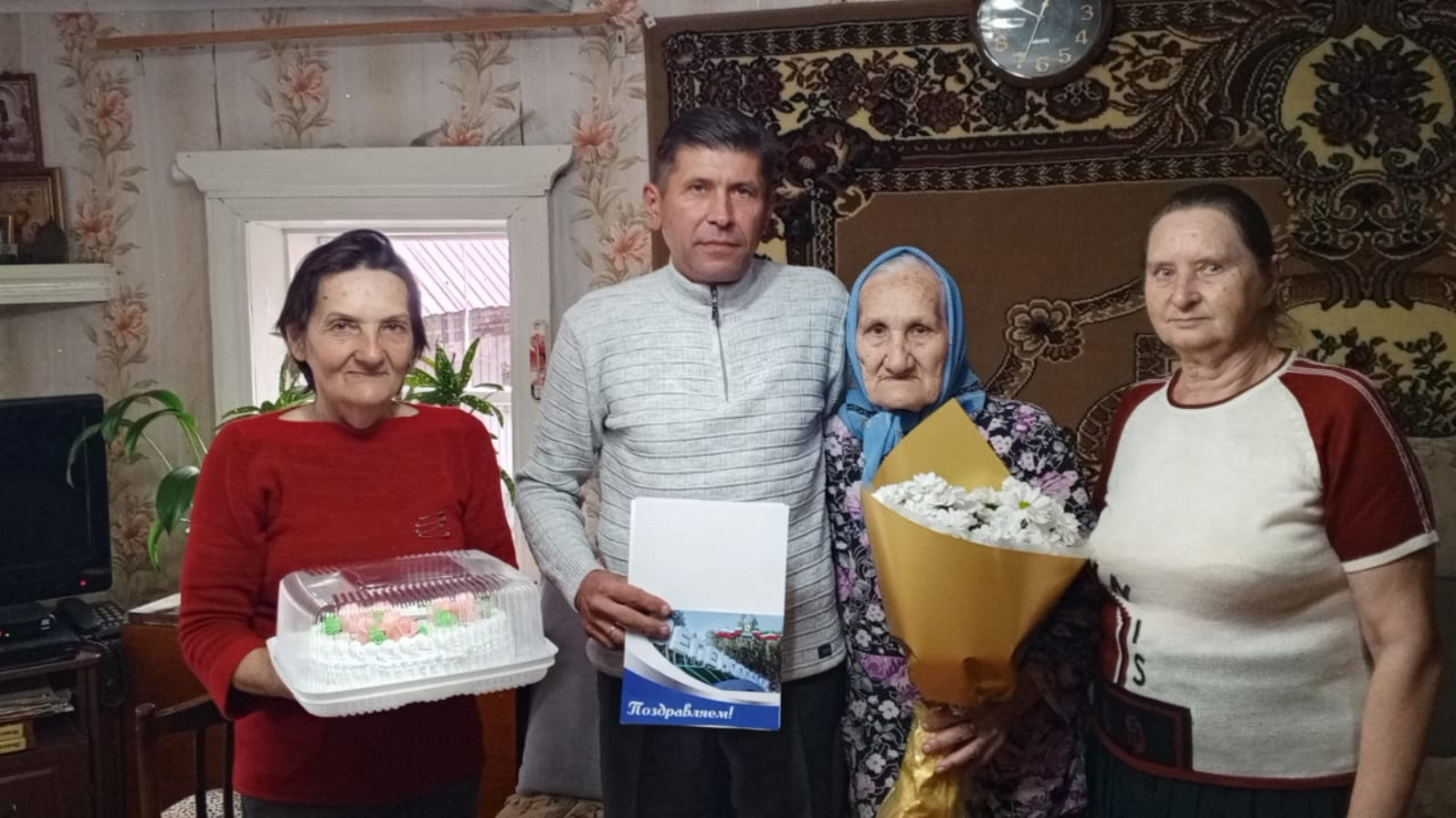 Яшел Үзән районы башлыгы исеменнән юбилярны Үтәшкә авыл җирлеге башлыгы Андрей Клопов котлады.